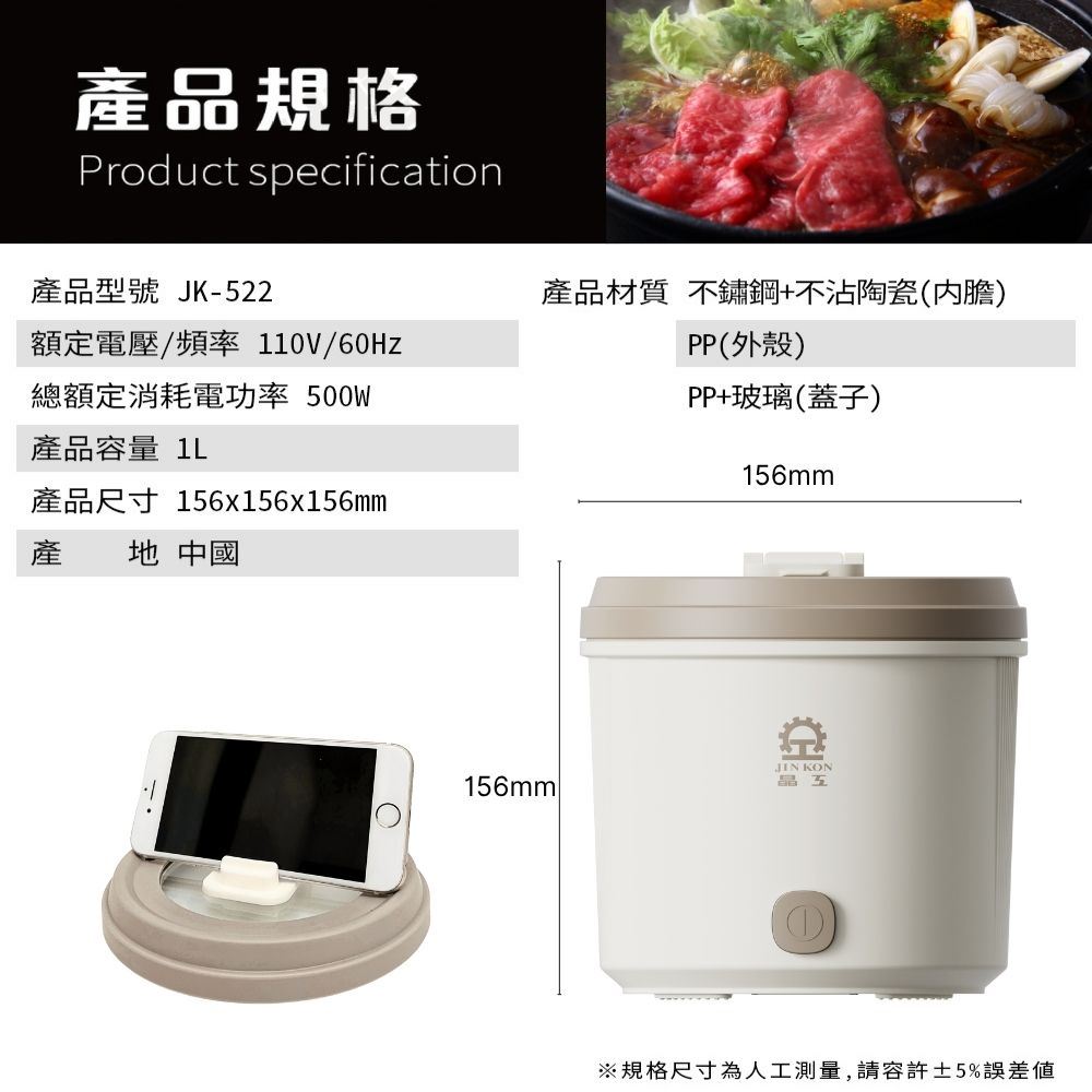 【晶工 Jinkon】1.5L多功能電碗 JK-102G